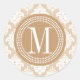 Pegatina Redonda Elegante Linen Beige Damask Personalizado