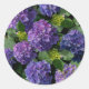 Pegatina Redonda Elegante magenta púrpura azul verde hidrangea flor