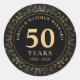Pegatina Redonda Elegante Mandala 50 Aniversario del Negro y Oro