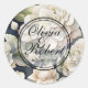 Pegatina Redonda Elegante marfil color de agua azul marino rosa flo