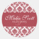Pegatina Redonda Elegante Maroon White Damask Wedding Favor
