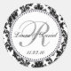 Pegatina Redonda Elegante matrimonio negro blanco plateado Damask