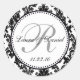 Pegatina Redonda Elegante matrimonio negro blanco plateado Damask