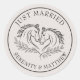 Celebra tu nuevo comienzo con este elegante diseño de boda de caballos Just Married. Perfecto para celebraciones rústicas de campo, granja o granero, este pegatina de crema de marfil captura tanto el encanto occidental como la elegancia atemporal. Un elegante motivo ecuestre simboliza el amor, la asociación y la libertad, lo que lo hace especialmente significativo para los amantes del caballo. Personalízalo con los nombres de la novia y el novio o la fecha de boda para que tus invitados aprecien. Ya sea que su tema sea occidental, rústico o elegante, este diseño le da un toque de gratitud a sus favores matrimoniales y su decoración.