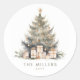 Pegatina Redonda Elegante Merry Christmas Tree Gold Minimalista
