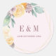 Pegatina Redonda Elegante Moda floral de monograma rosa