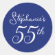 Pegatina Redonda Elegante Monograma Azul de la Armada 55ª fiesta de
