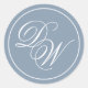 Pegatina Redonda Elegante Monograma Azul Desvaído con Iniciales Bla