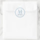 Pegatina Redonda Elegante Monograma Azul Dirección de devolución si