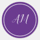 Pegatina Redonda Elegante Monograma Blanco Morado