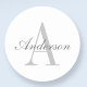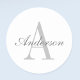 Pegatina Redonda Elegante Monograma Blanco y Gris
