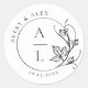 Pegatina Redonda Elegante Monograma Boda blanco negro