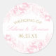 Pegatina Redonda Elegante Monograma Boda de flores doradas rosadas