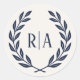 Un elegante pegatina de bodas con las iniciales del monograma de la pareja dentro de una corona de laurel. Perfecto para añadir el toque final a su papel boda, como sellos para sobres o adjuntando cintas, tarjetas y etiquetas a sus favores de agradecimiento. Colores: azul marino y crema.