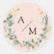 Pegatina Redonda Elegante, monograma, corona de eucalipto