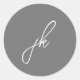 Pegatina Redonda Elegante Monograma de Boda en Letra Script Gris