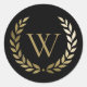 Pegatina Redonda Elegante Monograma de la corona de oro negro