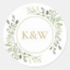 Pegatina Redonda Elegante Monograma de Oro Acuarela Verde Boda
