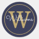 Pegatina Redonda Elegante Monograma dorado Nombre de guión Marina A