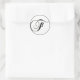 Pegatina Redonda Elegante Monograma F en blanco y negro