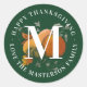 Pegatina Redonda Elegante Monograma Fall Harvest Feliz Día de Graci