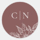 Pegatina Redonda Elegante Monograma Floral Iniciales Boda Rojo oxid