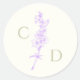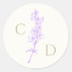 Pegatina Redonda Elegante Monograma Floral Lavanda Larkspur