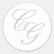 Pegatina Redonda Elegante Monograma Gris suave y Boda blanco Pegati