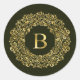 Pegatina Redonda Elegante Monograma inicial B verde dorado Damask