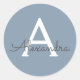 Pegatina Redonda Elegante Monograma moderno Minimalista azul turbio