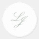 Pegatina Redonda Elegante Monograma Simple Script Sage Green Boda