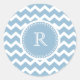 Pegatina Redonda Elegante Monograma Verde Chevron Light Aqua