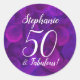 Pegatina Redonda Elegante morado 50 y fabuloso cumpleaños