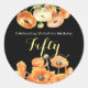 Pegatina Redonda Elegante Naranja negro Floral 50 cumpleaños