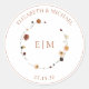 Pegatina Redonda Elegante Naranja quemado Escudo floral Monograma B