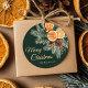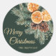 Pegatina Redonda Elegante Naranja verde Citrus Feliz Navidad