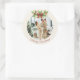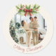 Pegatina Redonda Elegante Navidad con Acebo y Lazo Rojo -