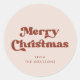 Pegatina Redonda Elegante Navidad Retro Peach Pink Merry