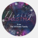 Pegatina Redonda Elegante Navidades de invierno rosa azul profundo