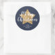 Pegatina Redonda Elegante Navy Blue Star Feliz Navidad