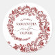 Pegatina Redonda Elegante negrita Boda de Damasco Rojo