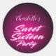 Pegatina Redonda Elegante neón negro rosado dulce retro 16 cumpleañ