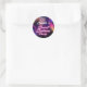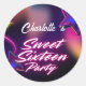 Pegatina Redonda Elegante neón negro rosado dulce retro 16 cumpleañ