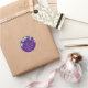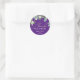 Pegatina Redonda Elegante Nombre con Fecha Floral Botánico Púrpura