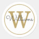 Pegatina Redonda Elegante nombre de guión de monograma dorado