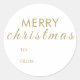 Elegante personalizado dorado "Feliz Navidad" a y de los nombres regalo Pegatina Clásico Redondo.