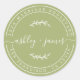 Pegatina Redonda Elegante Nombres Leaf Green Boda Dirección de Reto