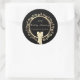 Pegatina Redonda Elegante Ornamento Floral de Oro, Aniversario Bow