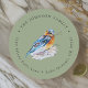 Una hermosa y elegante etiqueta redonda de dirección de devolución con un pájaro azul de primavera pintado a mano en un nido. ¡Personalízala y hazla tuya!