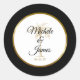 Personalizar estos elegantes pegatinas negros, blancos y dorados con un toque especial. Este moderno diseño presenta los nombres de la novia y del novio y la fecha de boda, una artística palmera dorada y una llanta de Relieve metalizado dorado sobre un fondo negro. Si necesita ayuda o elementos coincidentes, por favor contáctame.